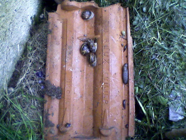 Nathlau , les tuiles , tu les mets un peu partout , les escargots et limaces voyagent la nuit , et se mettent a l'abri le jour .