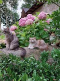 Quand on sort dans le jardin, on a 2 pots de colle qui suivent Olly et Choupette qui s'étale pour des grattouilles. Là elle appelle monsieur Coobe pour des câlins, elle parle beaucoup. En ce moment, elle nous apporte des papillons de nuit et on a droit des bisous moustache.