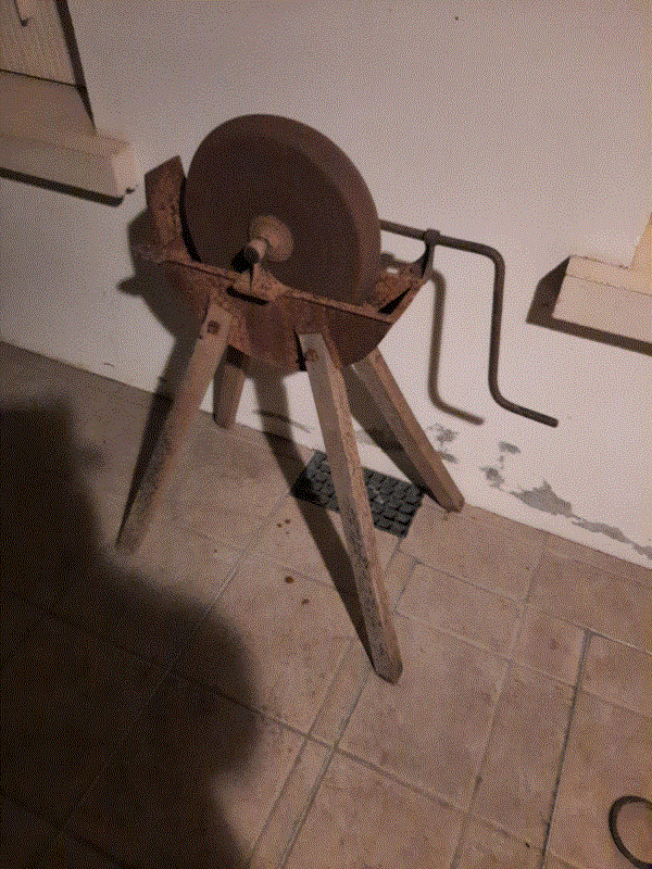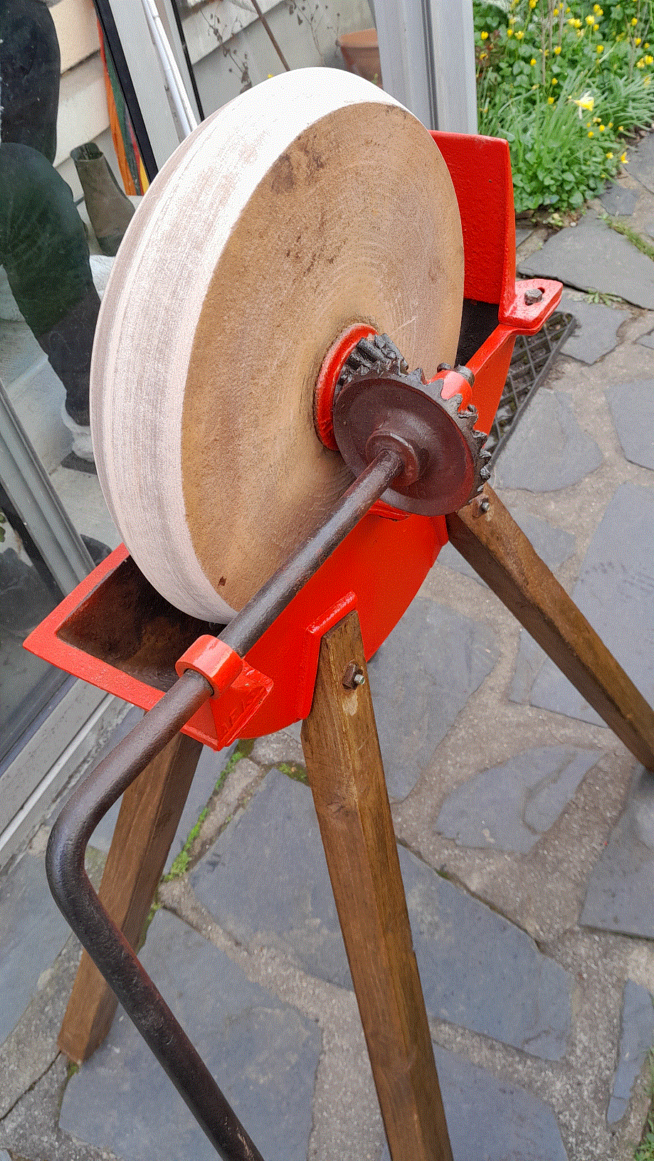 ) j'ai enfin pu terminer ce week-end la réhabilitation d'une meule à aiguiser qu'un ami m'avait acheter chez un brocanteur.
