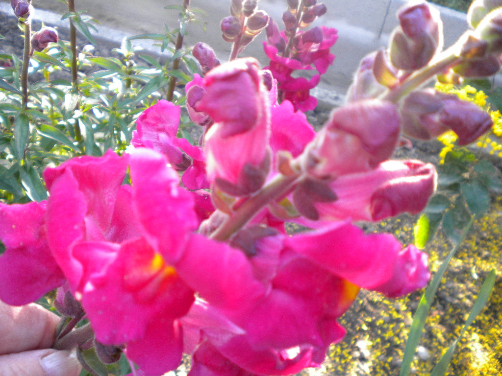 (on a plein d'autres fleurs (lis... narcisses... mufliers... vendangeuses...) on ne peut pas tout enlever... J-C avait essayé au début... tout ne repousse pas bien... et la plus petite racine de rosier (enfoncé dans le calcaire du sous-sol) qui reste... redonne un rosier encore plus vigoureux que le précédent!! :pas top: