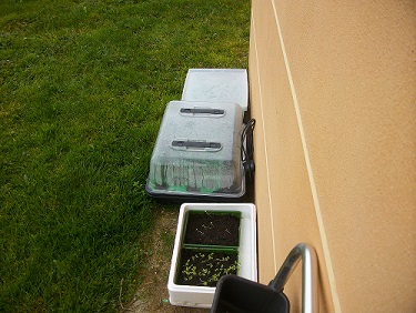 il fait du vent, tous les bacs sont dehors. On a semé des melons ,des courges banane rose ( un sachet russie), en pots, et du coriandre .