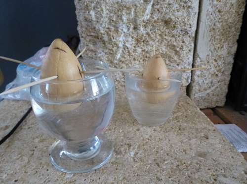 J'avais oublié: j'ai aussi un noyau d'avocat dans l'eau, mais je vais en mettre dans un pot direct en terre aussi.