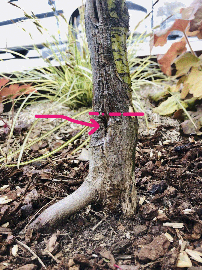 Sango kaku est greffé. (photo jointe). La flèche indique où le porte greffe a été coupé.