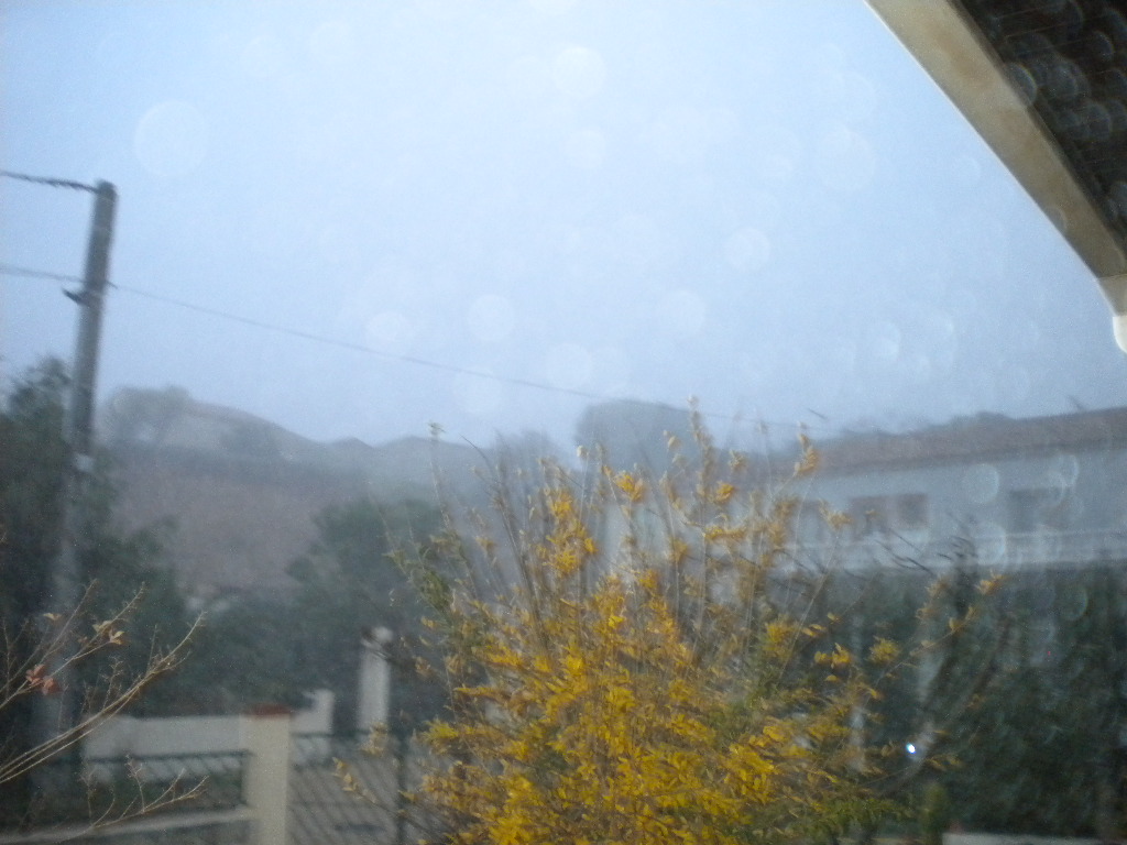La pluie a commencé dans la nuit, je viens de vider le pluviomètre . Donc pour aujourd'hui c'est en prison , dans la maison .