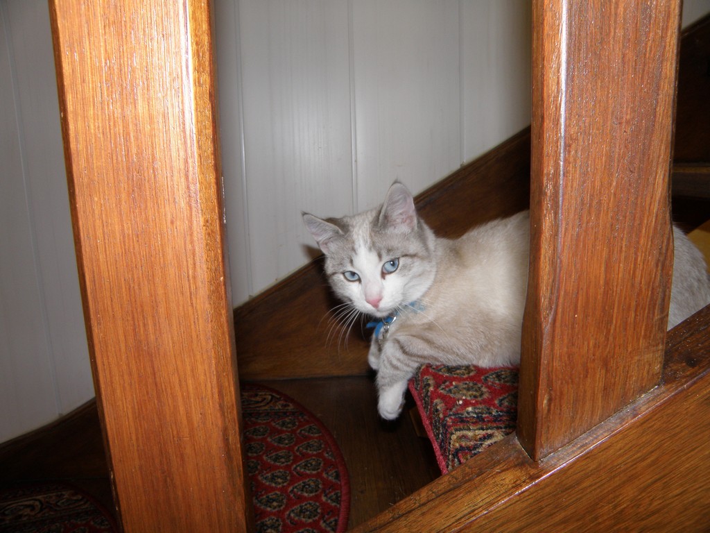 Maintenant plus question pour lui de manger à l'étage, il descend les escaliers pour manger dans l'assiette de Mimi! qui est très conciliant! j'avoue qu'il a bon caractère! ah si vous habitiez plus près de moi, nous nous partagerions les minous!!!!