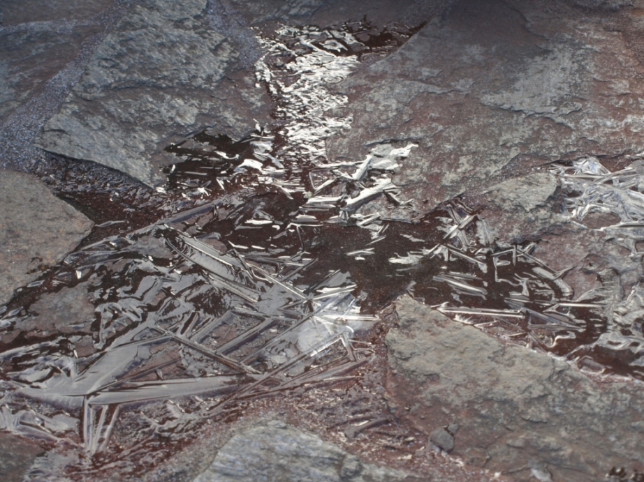 L'eau qui gèle dans la végétation et le niveau d'eau qui baisse.