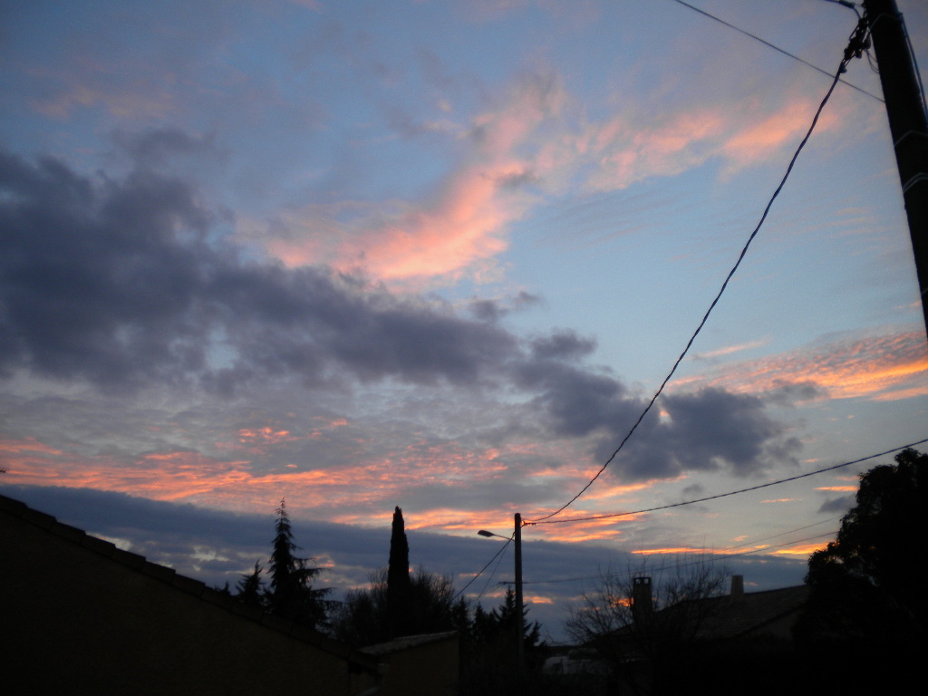 Tout à l'heure j'avais le même ciel que le tien mais je n'ai pu le prendre en photo car plus de batterie. De plus je ne sais si je pourrai en poster à nouveau sur le forum car j'ai bidouillé aujourd'hui pour mettre un avatar et cela ne m'a causé que des ennuis.