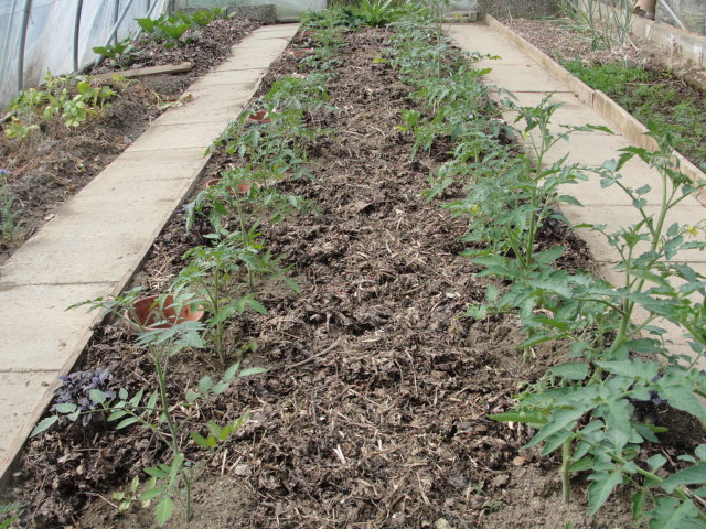 Depuis la mi-mai les tomatiers sont plantés et profitent déjà de cette nourriture.