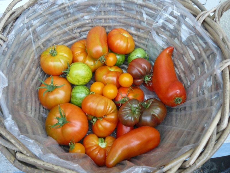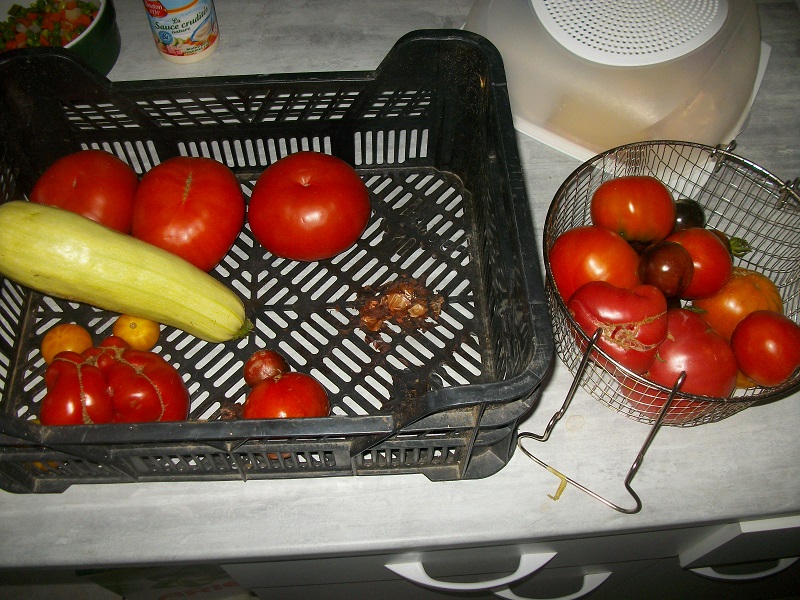 ce genre de panier chaque jour. Mildiou s'installe, je le contiens, mais à mon grand désarroi, les voisins ont tout leurs plants grillés sur pied. Ils n’enlèvent rien, polluant terrain et air ambiant. dur, dur !