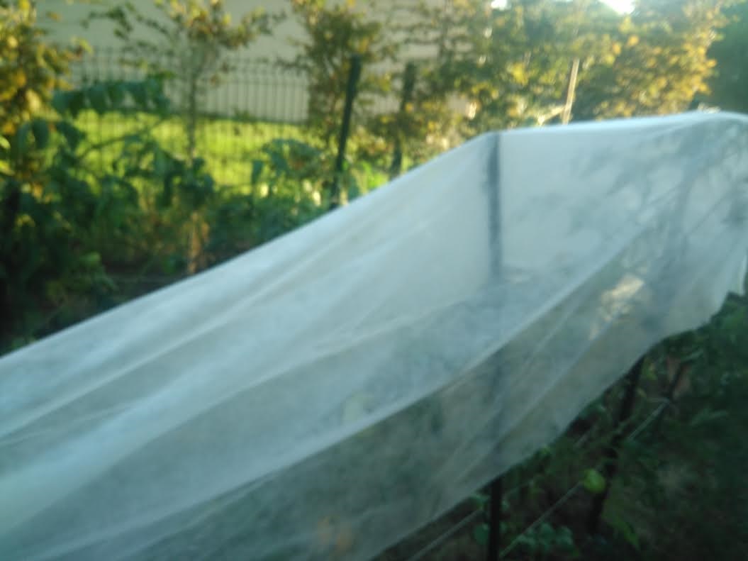 Le voile trouve sa justification d'emploi. Des plants encore bien chargés, et le mildiou qui pointe son nez.