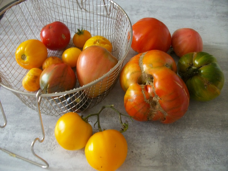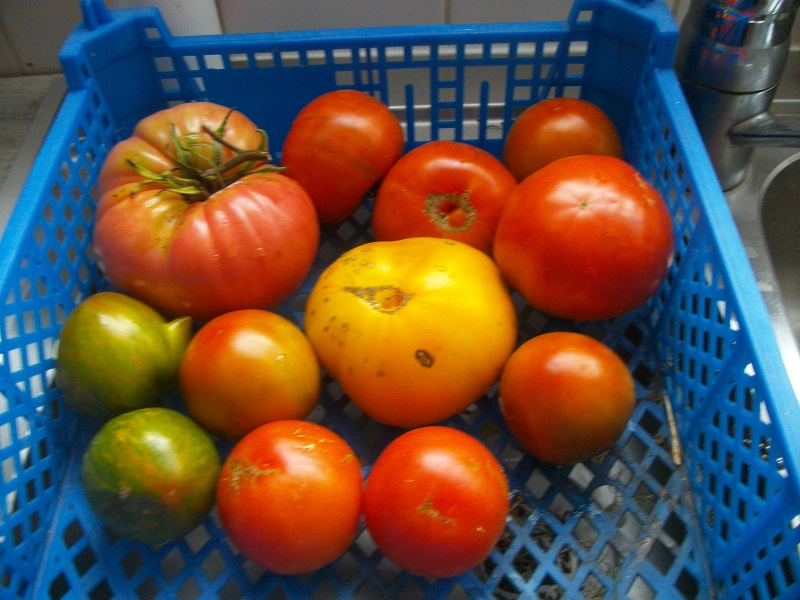 Le dernier panier maladie: maladie: il reste environ, encore 12 tomates colorées, le reste vert. Les premières iront en cagette, les secondes au vinaigre.