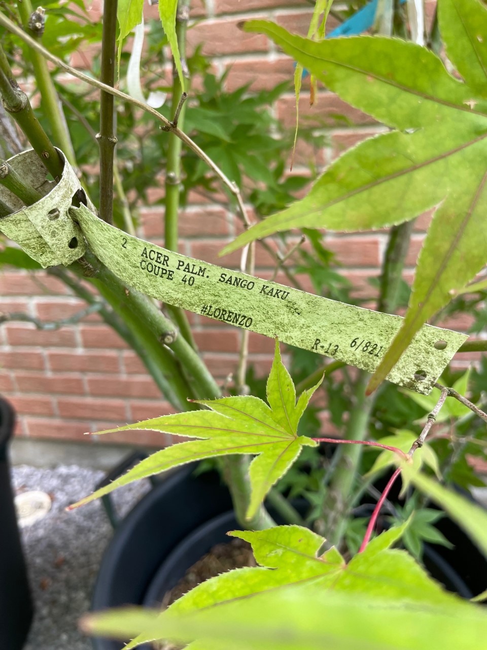 Je leur ai acheté un beau Sangokaku de 2m20 environ et un autre érable qui portait lui aussi une étiquette Sangokaku mais qui n’est est pas un. Le propriétaire me l’a confirmé. Des internautes m’ont indiqué que c’était certainement un Osakazuri, ce qui me conviendrait parfaitement, pouvez-vous me confirmer cette impression ? Je les ai pour le moment laissés dans leur mini coupe de 40cm et placés à l’ombre de la maison.
