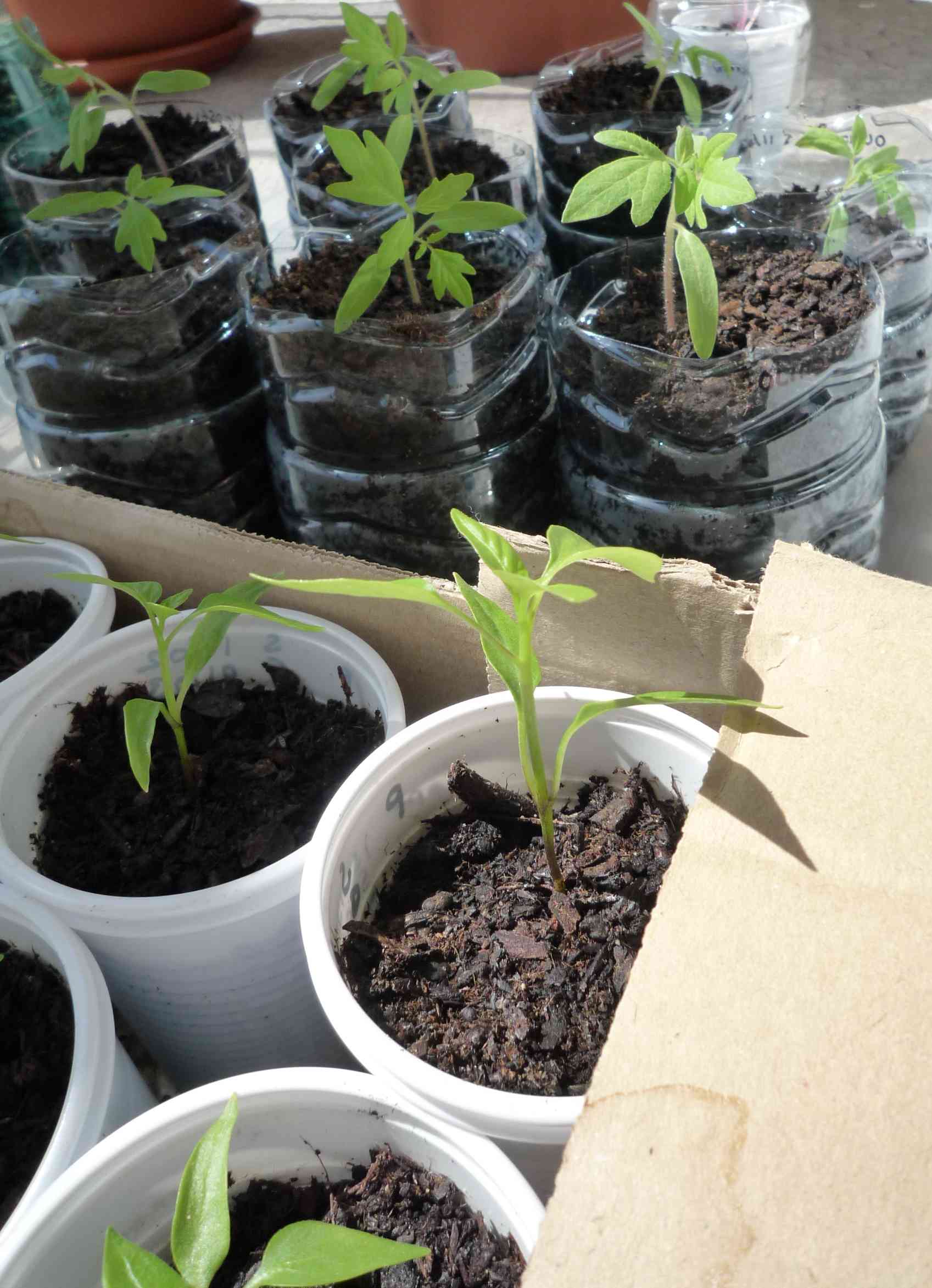 ok, tout à l'h, je mets tomates dans ma mini serre... ça va me libérer un peu de place... mais, faut que je les repique dans leur bouteille d'eau