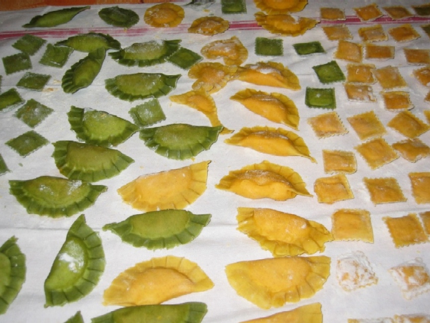 J'ai regardé hier une émission culinaire sur la télé Allemande.Il faisait des ravioles. Entre autre avec une farce de courge. Cela m'avait l'air bien succulent.. Je n'ai fait qu'une seule fois des pâtes fraiches et je n'ai pas d'appareil pour étaler ou étirer la pâte,je ne sais pas quel terme on emploie.
