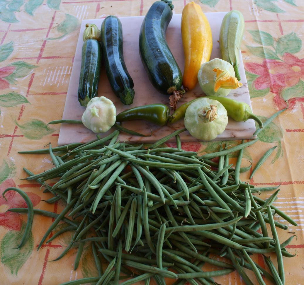 Pardon de ne pas avoir répondu plus tôt. Mais vu la charge de travail et le yoyo de la température qui me fatigue le soir je viens très peu sur l'ordi. J'en profite aujourd'hui car avec 32 à l'extérieur je ne mets pas le nez dehors avant 19 h. Voici une photo de mes patissons blancs cueillis ce matin avec les autres légumes récolté aussi ce matin.Aronia44 a écrit :Coucou Patou![]()