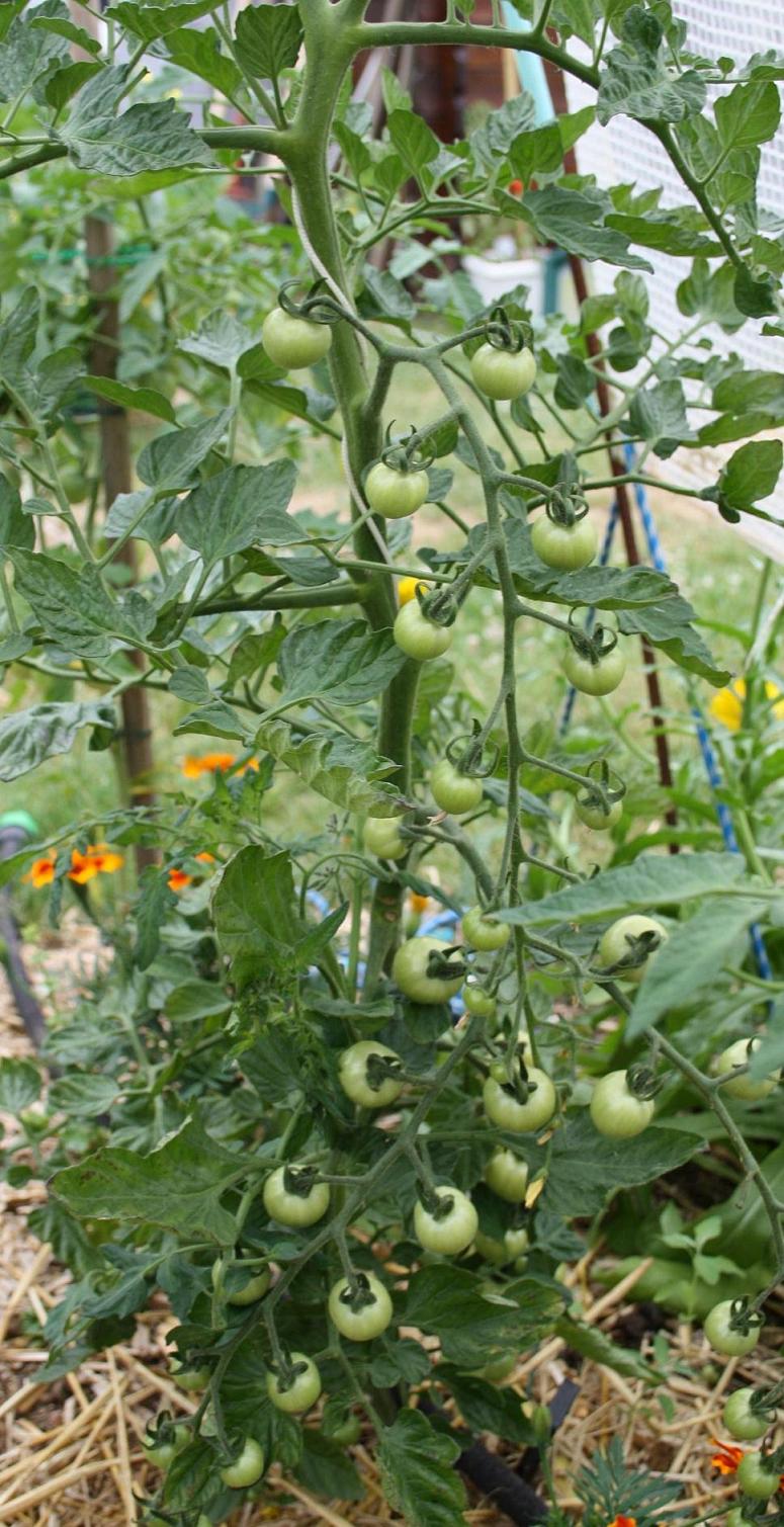 Coucou ma belle. En effet comme la majorité de mes graines de tomates celles-ci proviennent d'échanges. J'ai des interrogations sur cuban black qui me donne des tomates cerises rouges sur un pied de 30 cm (entre nous délicieuses), stupice qui me donne des grappes d'une 12e de tomates et le feuillage est normal au lieu de pomme de terre, Pipo qui me fait des fruits noirs de 40 gr sur un plan de 1,20m (elles sont très bonnes aussi). J'ai également un plan qui est venu spontanement dans le compost qui me fait une multitude de petits fruits minuscules en forme de poire (3 gr). Mais là il faudra attendre qu'elles murissent pour connaitre sa couleur et surtout son goût. Sans compter mon inversion en mettant les étiquettes j'ai inversé jaune flammée avec jersey devilPrincesse a écrit :Bonjour Patou,