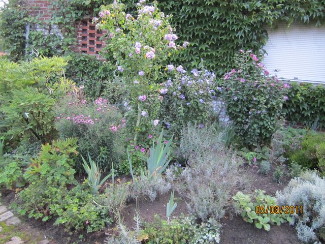 Un autre fouillis, plutôt jungle, avec achillea ptarmica The Pearl ( pompons blancs) en vedette grâce aux dernières pluies: