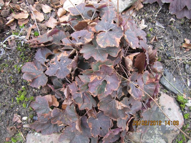Voici un pan de mon pareterre d'heuchères, un peu après la neige et les -18°C