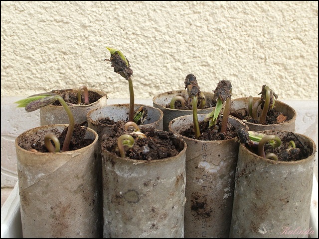 Et un petit truc en plus : les haricots Rocky ont été semés en rouleaux et mis à germer dans la maison. Je suis sûre ainsi, qu'ils n'auront pas trop froid pour germer et qu'ils ne seront pas boulottés par les limaces avant d'ouvrir leurs cotylédons