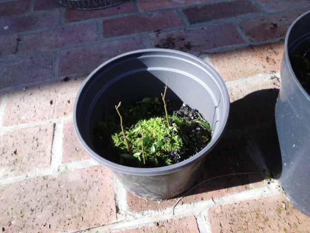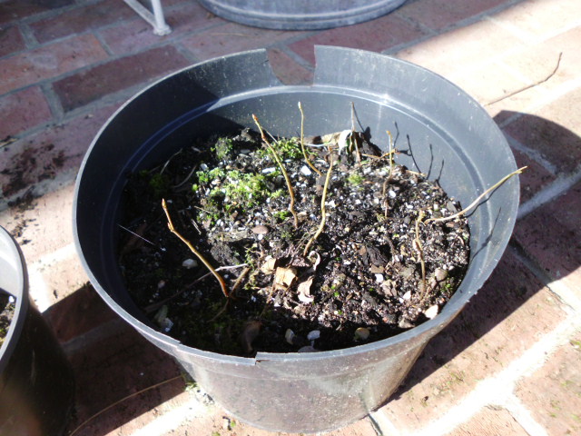 J'avais préparé mon mélange ds une brouette et il y en avait un peu plus que nécessaire. Pour ne pas le jeter je l'avais stocké ds deux pots en plastique. Et les pots posés sur la terre et plein nord, sans y prêter attention. Mais durant l'été je vois des "trucs" pousser... Je laisse faire et je fini par comprendre, incrédule, que ce sont des petits acer !!! Je n'osais pas y toucher. J'ai laissé tel quel et je n'ai arrosé que qq fois. Sans doute 3 fois