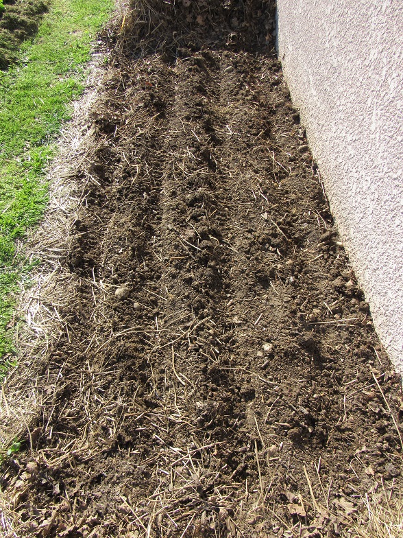 . Il ma fallu passer quotidiennement matin et soir avec l'arrosoir pour maintenir le semis humide. Il a tout de même gelé faiblement un matin sur deux durant la semaine mais sans conséquence. Ceci devrait changer la semaine prochaine avec le maintient d'un temps sec mais beaucoup plus froid avec des valeurs négatives la nuit s’approchant des records pour un mois d'avril