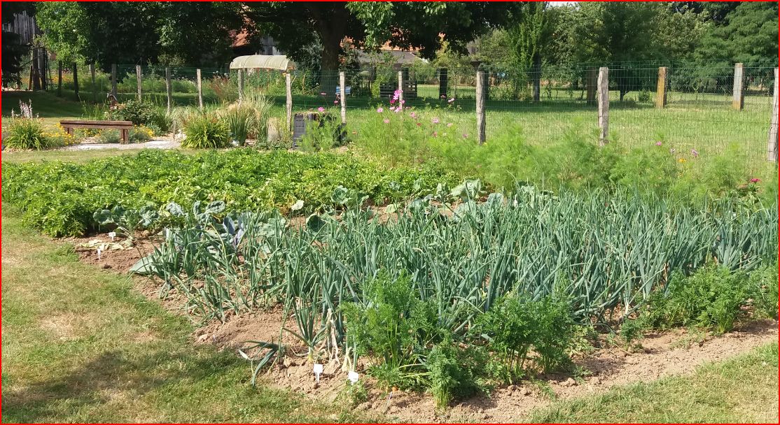 ...voilà la suite, on continue avec le potager traditionnel ou poussent carottes, oignons, panais (semis récent), choux en tout genre, haricots (semis récent) et pommes de terre.