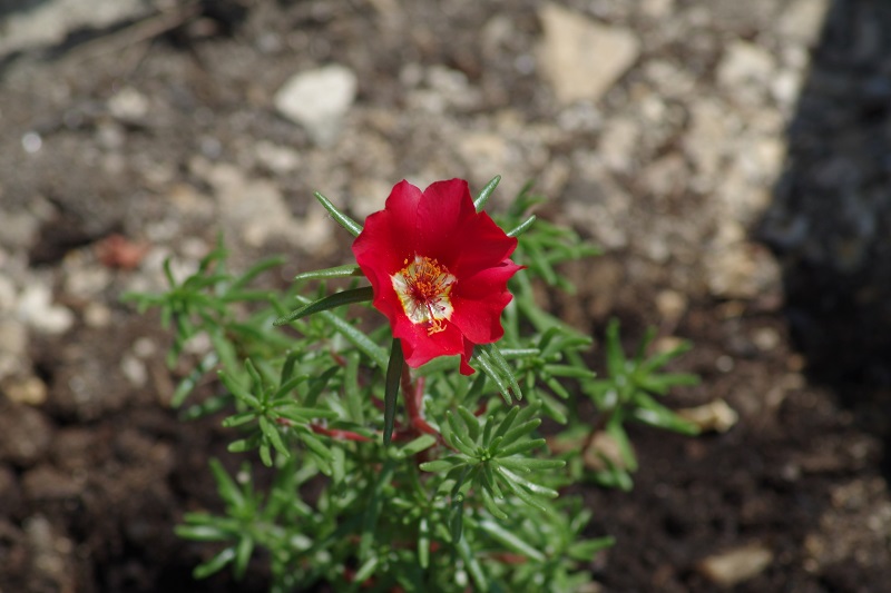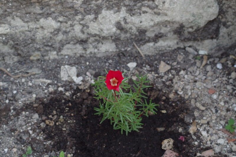 Il y a deux semaines on m'a donné 4 bébés plants de pourpiers . Voici la première fleur .