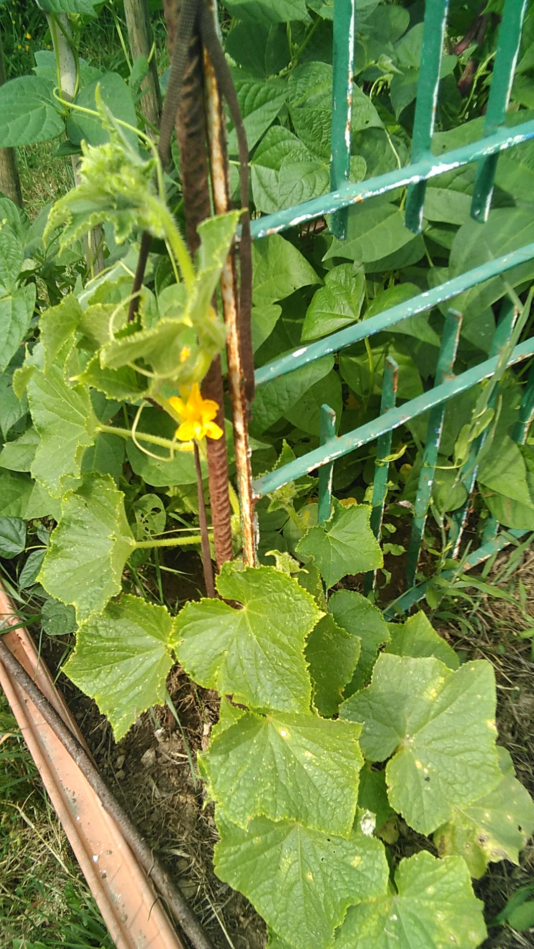 Sinon, il ne fait jamais très beau ni chaud, on vient de se faire une semaine alternance beau temps et bruine, avec 23 degres au max... les courgettes ont pris l oidium, je vais partir, donc je j'interviens pas. Les tomates restent belles mais ne rougissent toujours pas, je ne vais pas y gouter avant mon depart... les haricots c'est tres moyen aussi, manque de chaleur sans doute...