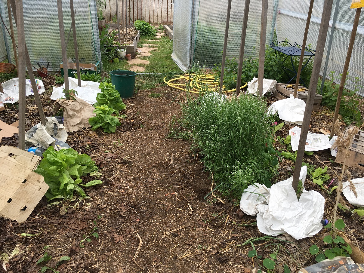 Dévoilé et dé-chapeauté les tomatiers !! arraché les salades qui commençaient à