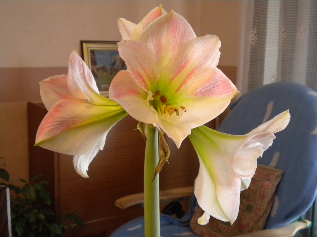 Ton amaryllis refleuri ou il n'a pas fini le mien a fait sa deuxième fleur avec 5 trompettes mais il est déjà en train de passer.