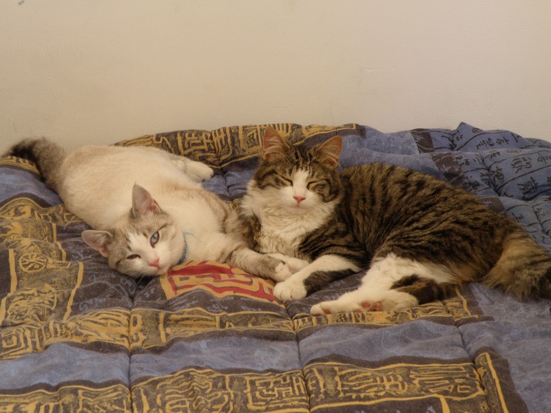Cet après-midi, gros gâté tous les deux! dans la chambre à l'étage!!! Tigré est de plus en plus sympa!!