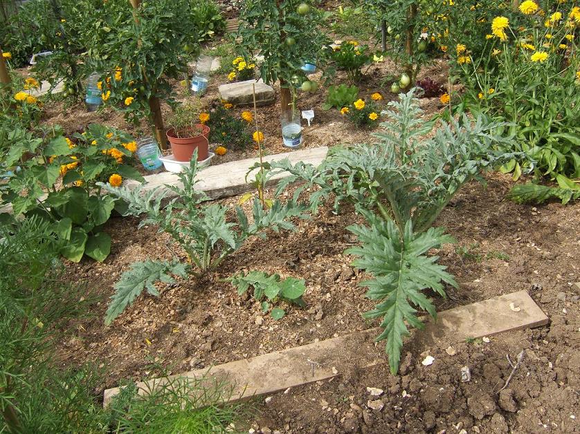 Parmi des artichauts que m'a gentiment envoyé pizzicato, la palme revient au gros vert de Laon qui dépasse les autres de deux têtes mais qui n'a pas encore donné de fruit.