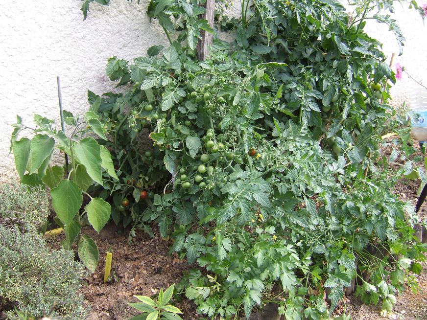 Par contre j'ai des pieds de tomates ou le premier rang est bourré de fruits et le deuxième et troisième rangs les fleurs ont sèché. Curieux.