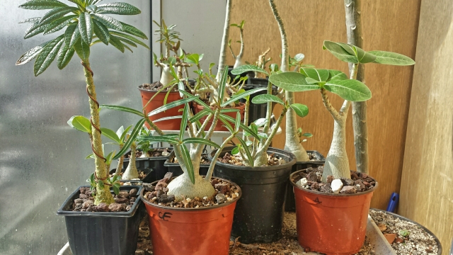 Voici quelques uns de mes adéniums, rempotés début juillet 2014: