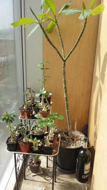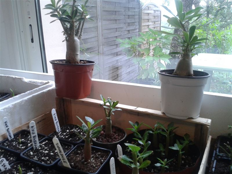 Ces adéniums sont pour le moment dans mon salon, sous rampe néons. Ils n'ont pas encore goûté au soleil.