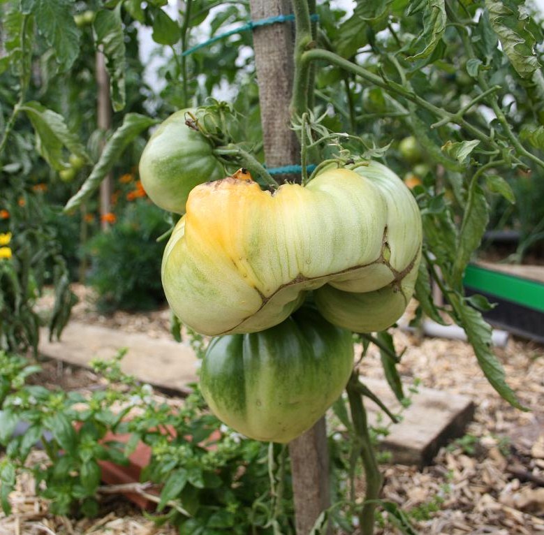 Homer filke's yellow a pris la grêle et j'espère que les fruits touchés iront à maturité.