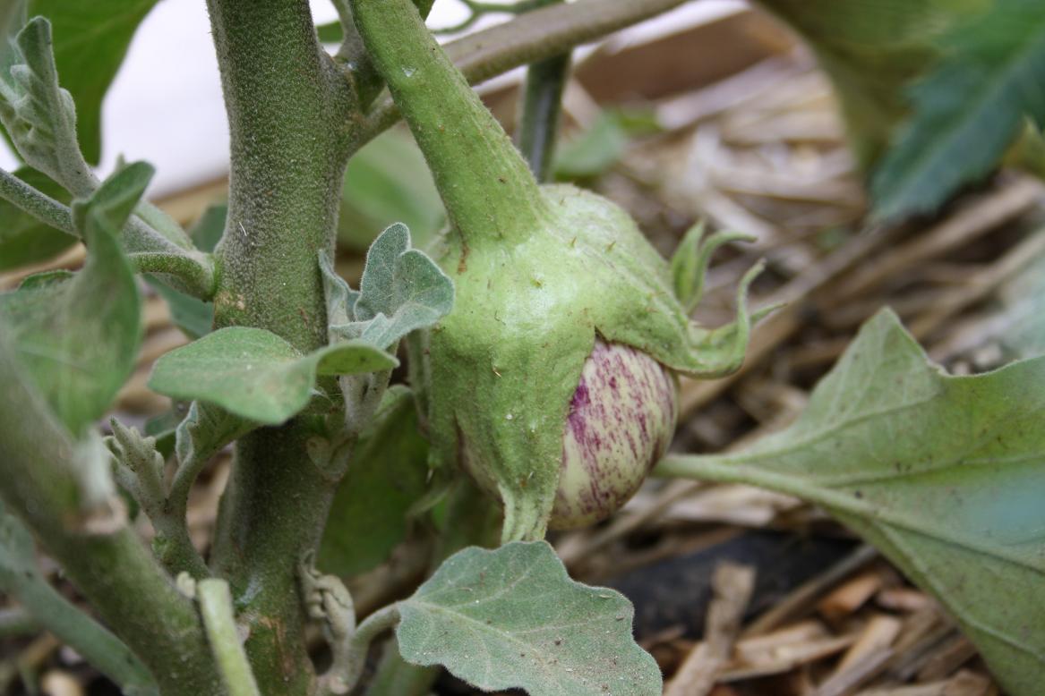 Par contre mes aubergines malgré le froid de canard de ces derniers jours m'ont fait des fruits. Rayée de gandia et ronde à oeuf.