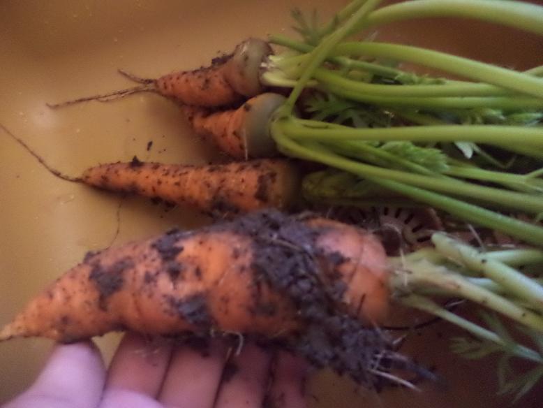 J'ai récolté des carottes,des tomates,des aubergines,des salades,des épinards et des framboises.
