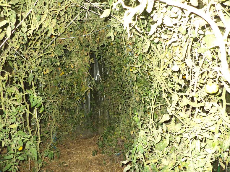 J'ai retiré les pieds de tomates du tunnel et je les ait mis sur le tas de compost car dans la serre je ne peux pas faire de rotation.