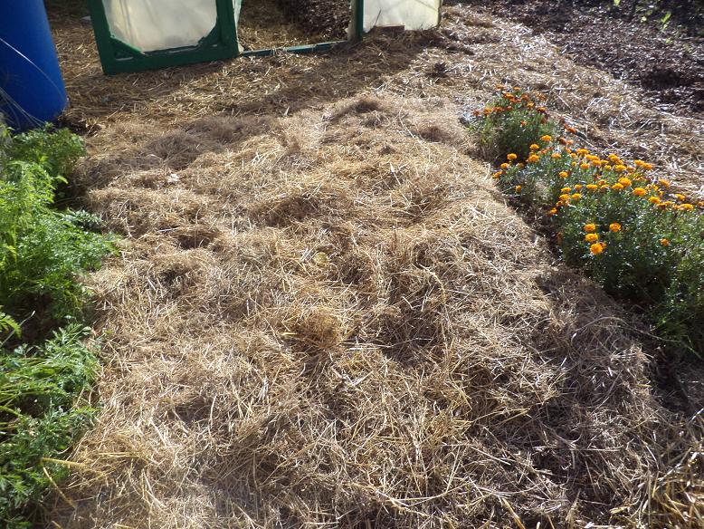 Je passe environ 7 à 8 bottes de paille par ans en l'utilisant uniquement pour les allées.