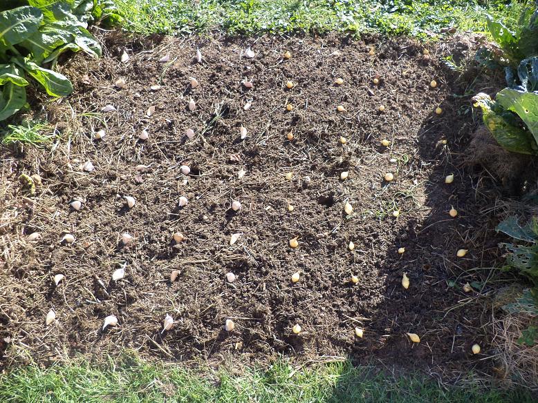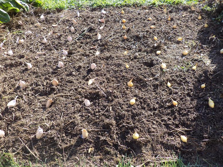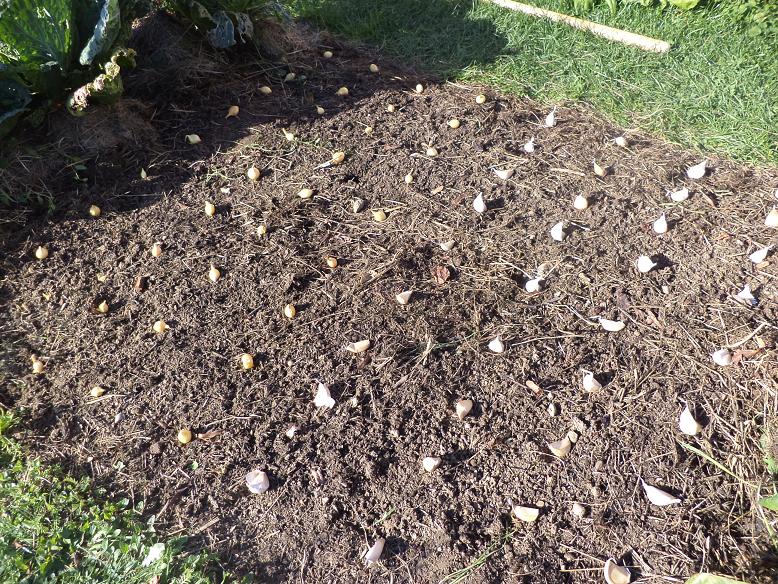 Sous le soleil d'hier,j'ai planté ma première série d'ail blanc et d'oignon jaunes.