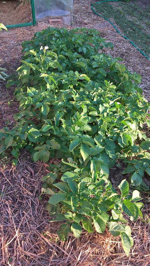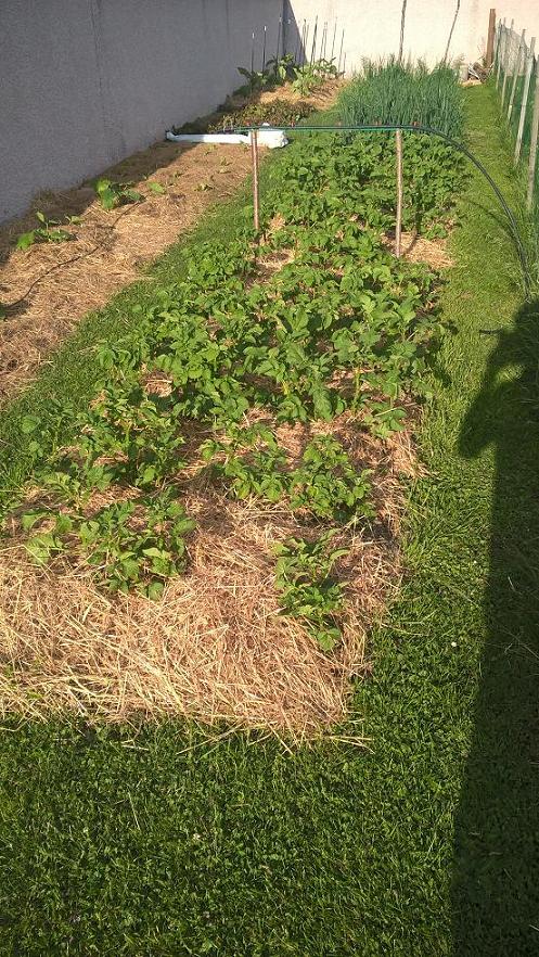 Hier soir j'ai effectué le second buttage des pommes de terre,toujours à l'aide de foin.