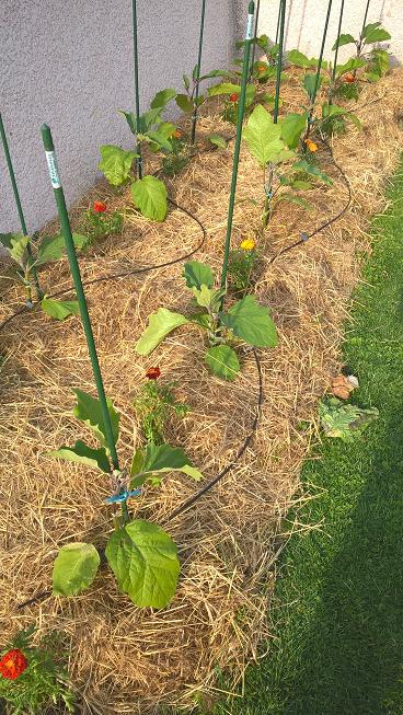 Comme prévu,hier soir j'ai placer les tuteur et le goutte à goutte pour les aubergines.