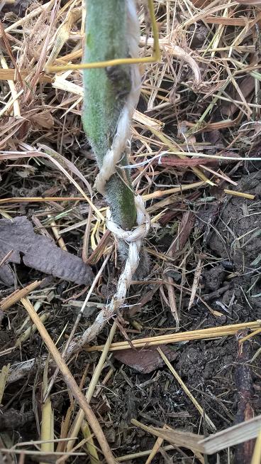 Comment tu fixes ta ficelle au pied de la tomate ? un simple noeud ?