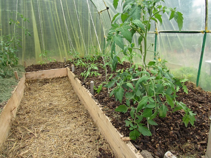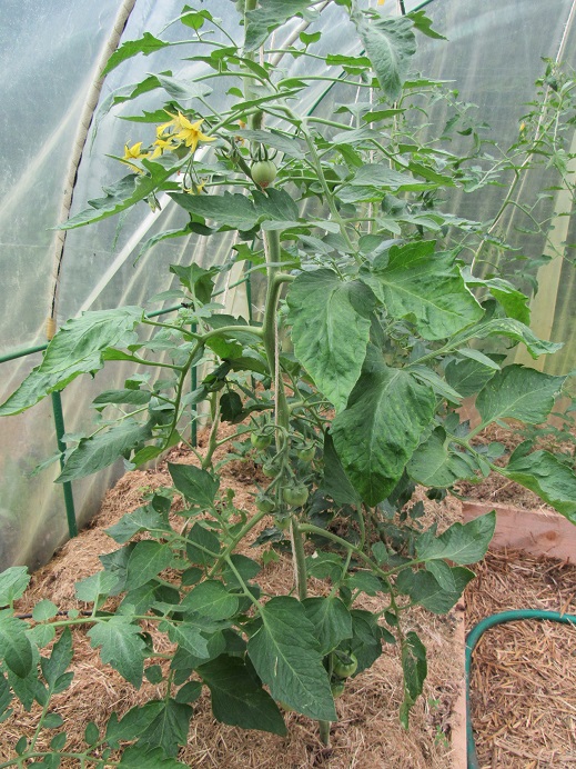 Cela fait donc 19 plants de tomates dans le tunnel (9 plants sur la planche de droite,9 sur celle de gauche et 1 sur celle du fond).