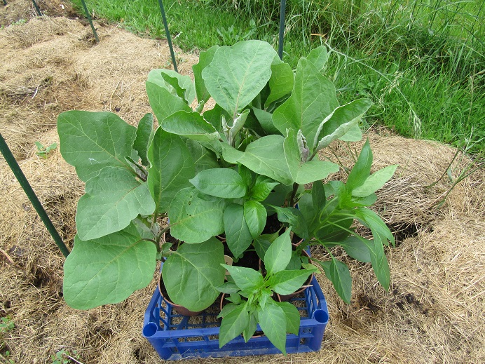 Après la plantation de courgettes,le soleil est apparu et j'ai planté mes aubergines.