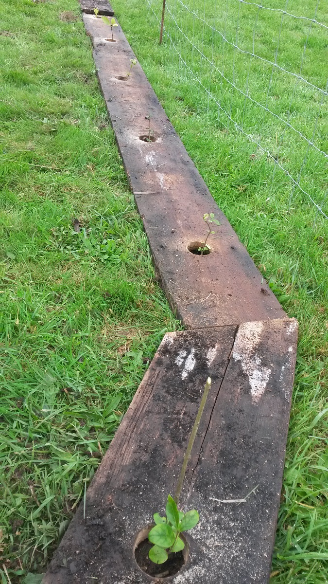 J'ai donc récupéré des vieilles planches déjà à moitié pourries qui rempliront parfaitement les fonctions ci-dessus, et qui apporteront du carbone en finissant de se décomposer (après la photo j'ai rempli les trous de paillage). Bref, sur la papier ça m'a semblé être une bonne idée, on en reparlera dans 2-3 ans !