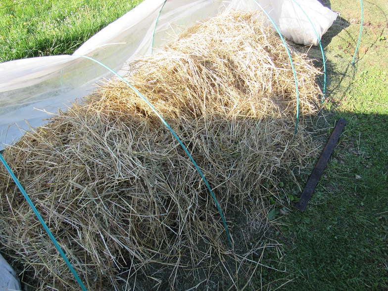 Hier soir j'ai recouvert les courgettes avec une cachette en bois. J'ai ensuite recouvert la planche de 30cm de foin :D et refermé le tunnel de P17.