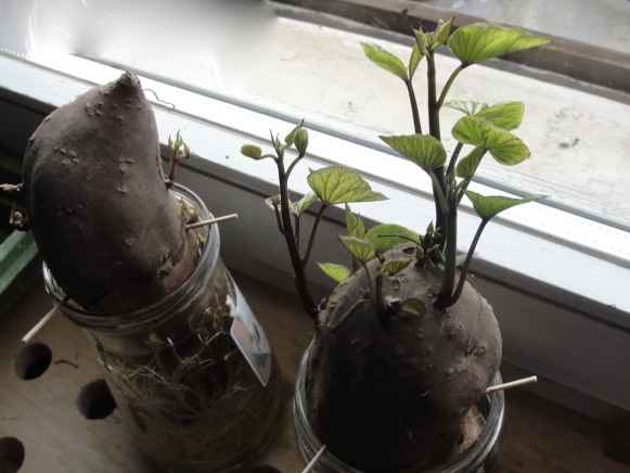 Le 22 mars, j'avais mis deux patates douces à germer.
