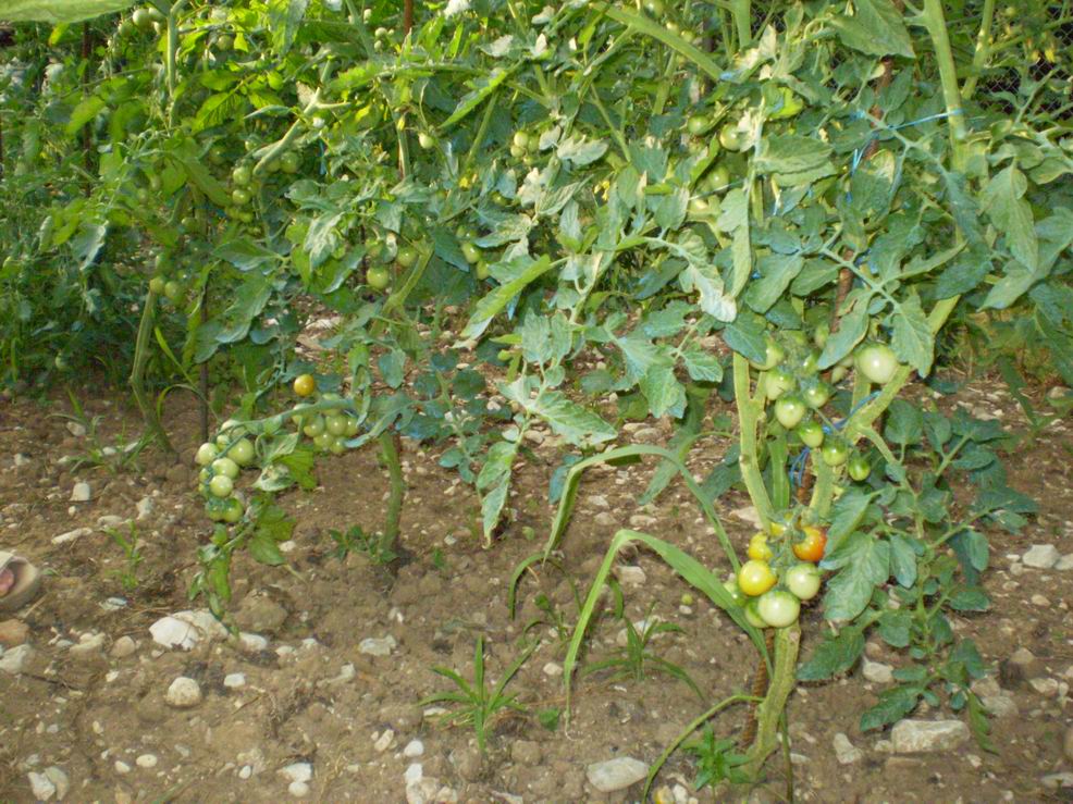 il était temps car avec les orages que nous avons reçu j'ai eu chaud !!! j'avais tendu des fils le long de mes rangées pour maintenir mes plants debout car avec le poid de l'eau mes tomates tombaient une a une, l'horreur absolue !!!